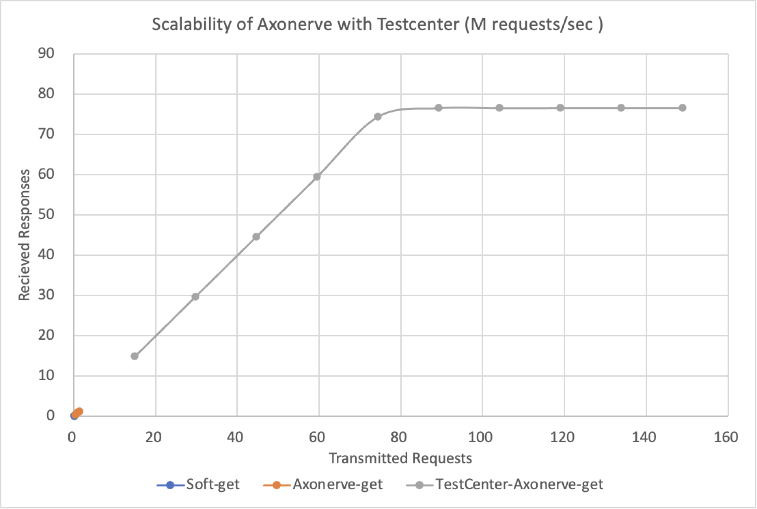 The "over" on the right side of the graph for Axonerve Server means losses, which occurred in only two of the 33,000 requests. Currently, Axonerve Server does not handle lost attempts.